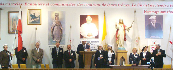 As Pilgrims of Saint Michael, we always wear the white beret when doing apostolate work or when attending "Michael" functions, being it is the habit of our Order of Saint Michael. It is an outward sign that we are convinced Social Crediters, that we bear witness to this truth.