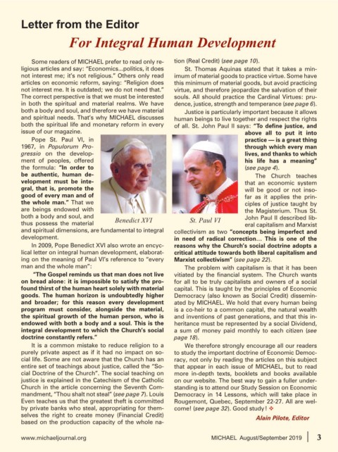 A journal of Catholic patriots For social justice through Economic Democracy ligious articles and say: “Economics...politics, it does St. Thomas Aquinas stated that it takes a min-