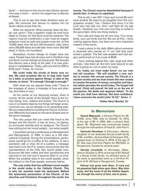 8 MICHAEL October/November/December 2019 www.michaeljournal.org