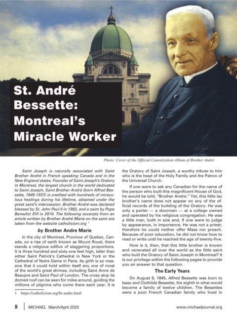 Photo: Cover of the Official Canonization Album of Brother André “My dear little ones, it has been six years since chores. It was most likely the only time he had to play