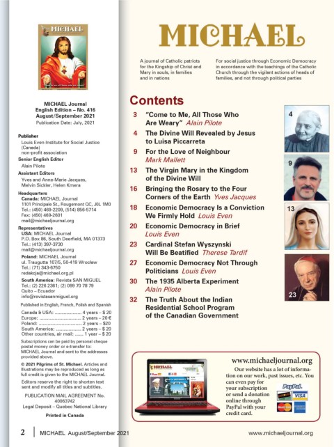 2 MICHAEL August/September 2021 www.michaeljournal.org