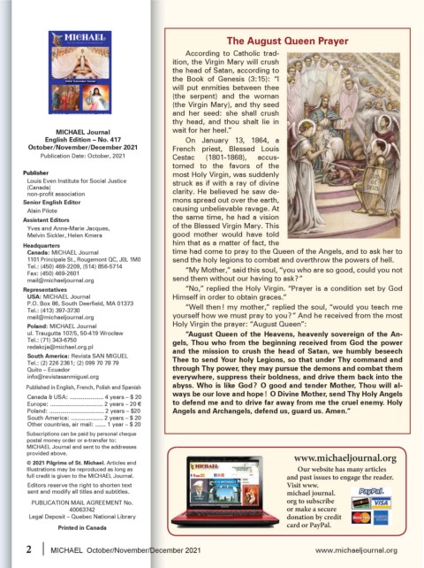 2 MICHAEL October/November/December 2021 www.michaeljournal.org