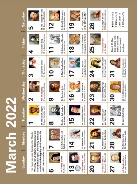 Sunday The Pope’s prayer itentions for March: We pray for Christians facing new bio- ethical challenges; may they continue to defend the dignity of all human life with prayer and action. 6 1st Sunday of Lent St. Colette 13 2nd Sunday of Lent St. Dulce Lopes Portes 20 3rd Sunday of Lent St. Joseph Bilczewski 27 4th Sunday of Lent Bl. Louis Edouard Cestac