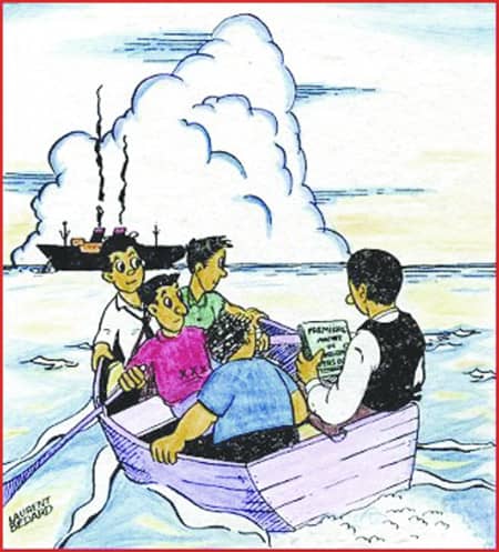 Efa nahita fiainana sarotra ihany ry zareo tany amin'ny tanànany taloha, tany Eropa. Tsaroany ny fihafiany teo anatre-han'ny tranom-barotra feno hipoka. Fa aty amin'ny "Ile des naufragés" kosa dia tsy ho hitany intsony izany hoe vokatra simba fotsiny nefa tena ilaina izany. Tsy fantatr'io nosy io ihany koa ny hetra sy haba isan-karazany. Lavitry ny tebiteby amin'ny fandoavana trosa sy hetra ry zareo aty.